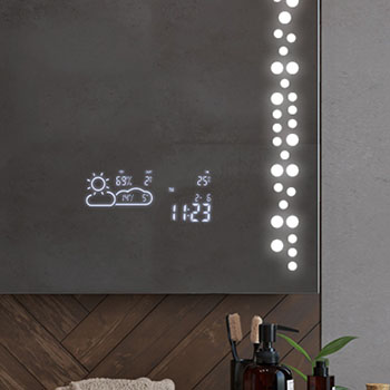 Our mirrors are not just about lighting, choose from one of the information displays available. From the simplest watch to weather trend forecast stations. Ideal solutions that practically streamline your daily routine.