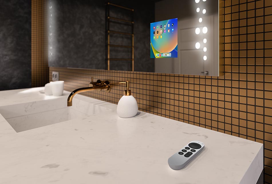 That's not all, because an illuminated LED mirror with decor can become your home entertainment center. How is this possible? The optional Smart display allows you to stream your favorite movies and music and send the image to a 10-inch screen integrated into the mirror surface. The built-in Bluetooth speaker with a range of up to 10 meters allows you to play your favorite music to accompany you during your morning toilet or evening relaxing bath. See for yourself that the bathroom mirror (dot decor) is a product created for the 21st century.